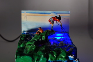 以下はその一部例として江戸両国橋のジオラマと葛飾北斎冨嶽三十六景「甲州三島越」を動かしてみました。