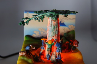 積層面を丁寧に処理し、ちまちま彩色して出来上がり。積層の印刷物は表面が荒かったり滲んだりして塗装するのに色がうまく塗れない。なので、積層型の3Dプリンターではこの大きさ以上が模型として成立する大きさ。