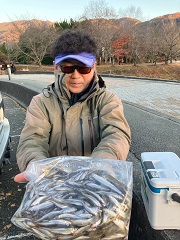 本日のトップ賞は、山梨市の平山孝さんでした。 ハワイ沖の8mラインで頑張り、4〜11cmのワカサギを600匹!!というとても立派な釣果を報告してくれました。 電動2本使用で、エサは紅サシだったそうです。 ご立派でした〜!! この他のチャレンジャーからも、200〜300匹という報告が多く届いています。