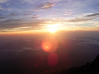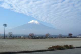 忍野中学校のグラウンドから見た、朝の富士山の様子です。秋の空をずっと見ていたくなりますね。 |