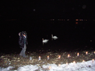 6500個のキャンドル キャンドルをわきに、白鳥がいました!