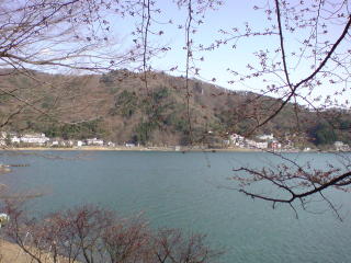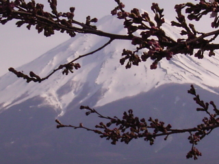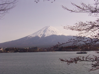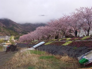 河口湖北岸桜 朝の湖畔はかっこうの鳴き声とボートの音が響いて静かでした。 |