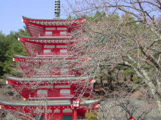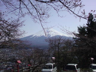 富士吉田忠霊塔 朝はまだ、人もあまりいませんでしたが、今日・明日はさくら祭りなのできっと賑わっていることでしょう。 |