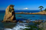 この場所は夕刻何度となく訪れてはいるが日中のカットがなかったので、立ち寄った。 NDフィルターで波の形状を滑らかにし、近景から遠景まで意識して撮りました。小さく釣り人が入っています。 |