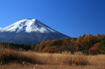 | 風景の広がり感を強調する時は、思いきって空を広く画面に入れる。この場合、全体をシンプルな画面にするのがポイント。写真からは富士の表情や秋の空気感が伝わってきますが、少し下部が窮屈な気もします。 |