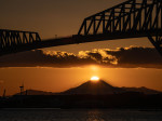 | 撮る位置や時間など制約がある中ですが、ずばり、右半分で縦構図です。うるさくなりがちな上部のブリッジと雲は重いので、どちらかをカットすべきでした。それでも夢を感じさせますね。 |