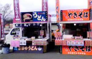 焼きモロコシ・焼きいか、カルビ、フランクフルト、かき氷などの販売