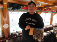 ・厳しい寒さが続き釣果がなかなか上がらない日が続いていましたが、今日は久しぶりに群れが船の下に入り、釣果が伸びました!今日のトップは50匹!