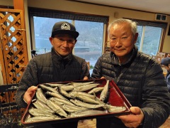天候⇒晴れ時々曇り 風⇒南東 弱い  気温⇒-1〜10 水温⇒10 数⇒30〜465匹   ポイント⇒観光船桟橋沖 水深⇒11m   仕掛け⇒推奨0.5〜1.5号  サイズ⇒4.5p〜10cm