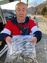 今日は、晴れの一日となりました。 気温も上がって暖かく、日中は暑いくらいに感じるほどに・・・ 風もごく弱く、湖面が穏やかだったため、絶好の行楽日和、釣り日和・・・という状況でした。 こんなコンディションの中でのチャレンジだったのですが、今日もワカサギの方からとても立派な報告が届く結果となっています。