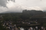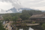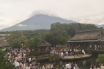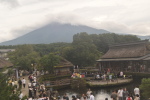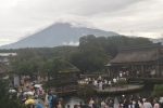 | お昼過ぎの富士山と忍野風景!!!、沢山のお客様で賑わっていますね。 |