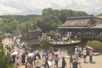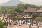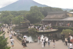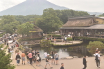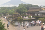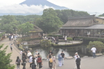 | お昼過ぎの富士山と忍野風景!!!、沢山のお客様で賑わっていますね。 |