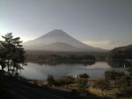 | ちょっぴりうつる富士山🗻 冬の精進湖 沢山の人影… |