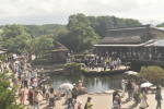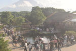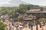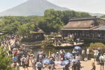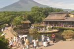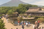 | お昼過ぎの富士山と忍野風景!!!、沢山のお客様で賑わっていますね。 |